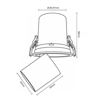 Deze LED-inbouwspot is voorzien van handige klemveren, waardoor de installatie snel en eenvoudig is. Maak een zaagmaat tussen de ø 86-97 mm in het plafond, sluit de spot aan op de standaard bedrading en klem hem stevig vast. Met een inbouwdiepte van slechts 100 mm is deze spot geschikt voor vrijwel elk plafond.