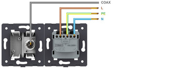 Wandcontactdoos met COAX TV-aansluiting en blindplaat die perfect in elk interieur past