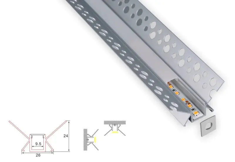 Profil en plâtre construit -in | 1 mètre Buitenhoek | Aluminium 26 x 24 | Bande LED de COB