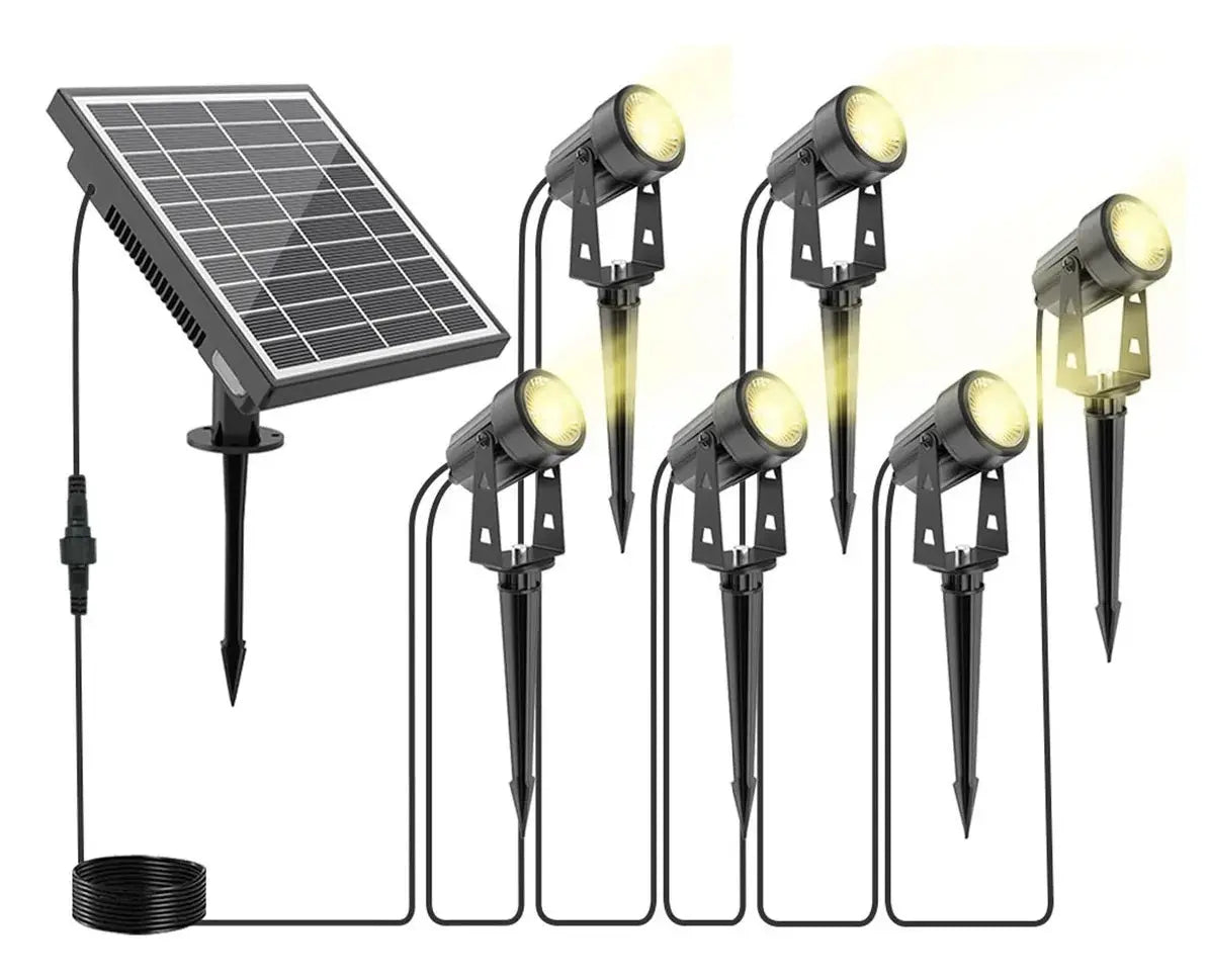Ensemble de pot de jardin complet | Rechargeable - Plug de panneau solaire et lecture | 6 taches de jardin chaud / blanc
