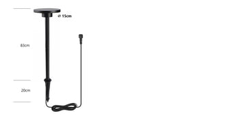 La lampe est équipée d'un câble fixe de 3 mètres de long. Cette longueur supplémentaire a été consciemment choisie, afin que vous puissiez facilement la placer le long d'un chemin ou d'une allée, et le câble peut l'éliminer soigneusement dans le sol.