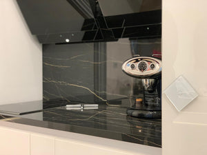 Met de gouden schakelaars aan de zijkant van de keuken voegt u een vleugje luxe toe aan uw interieur. Deze details versterken de elegante uitstraling van de keuken en maken het geheel compleet.