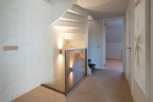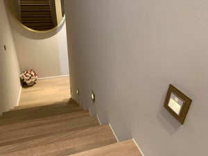 De gouden Livolo schakelaars bij de trap zorgen voor eenvoudig bedienen van uw lampen. Een luxe toevoeging die functionaliteit en design naadloos combineert.