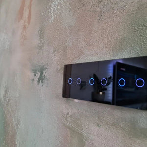 Het zwarte glazen touch schakelmateriaal combineert luxe met innovatie.